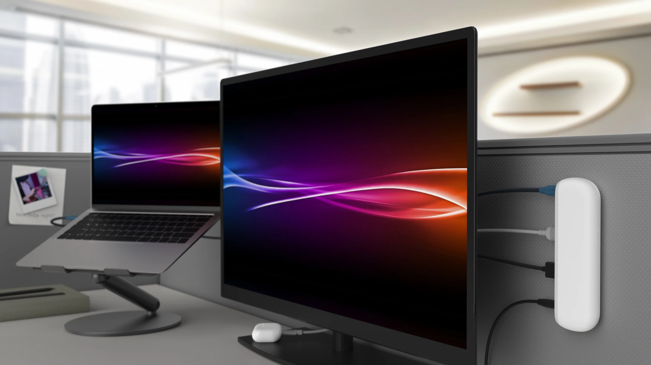 Elevate your workspace with the Pebble Pro and its magnetic functionality. Effortlessly attach it to your office partition or beflo Granite for a clutter-free setup. No drilling or complex installation required.