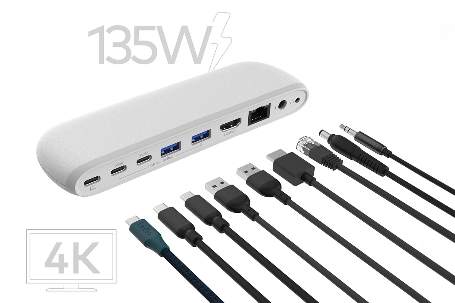 It’s a sleek charging dock with all of the inputs you wish your laptop had: 3 USB-C, 2 USB-A, plus AUX, HDMI, and ethernet.