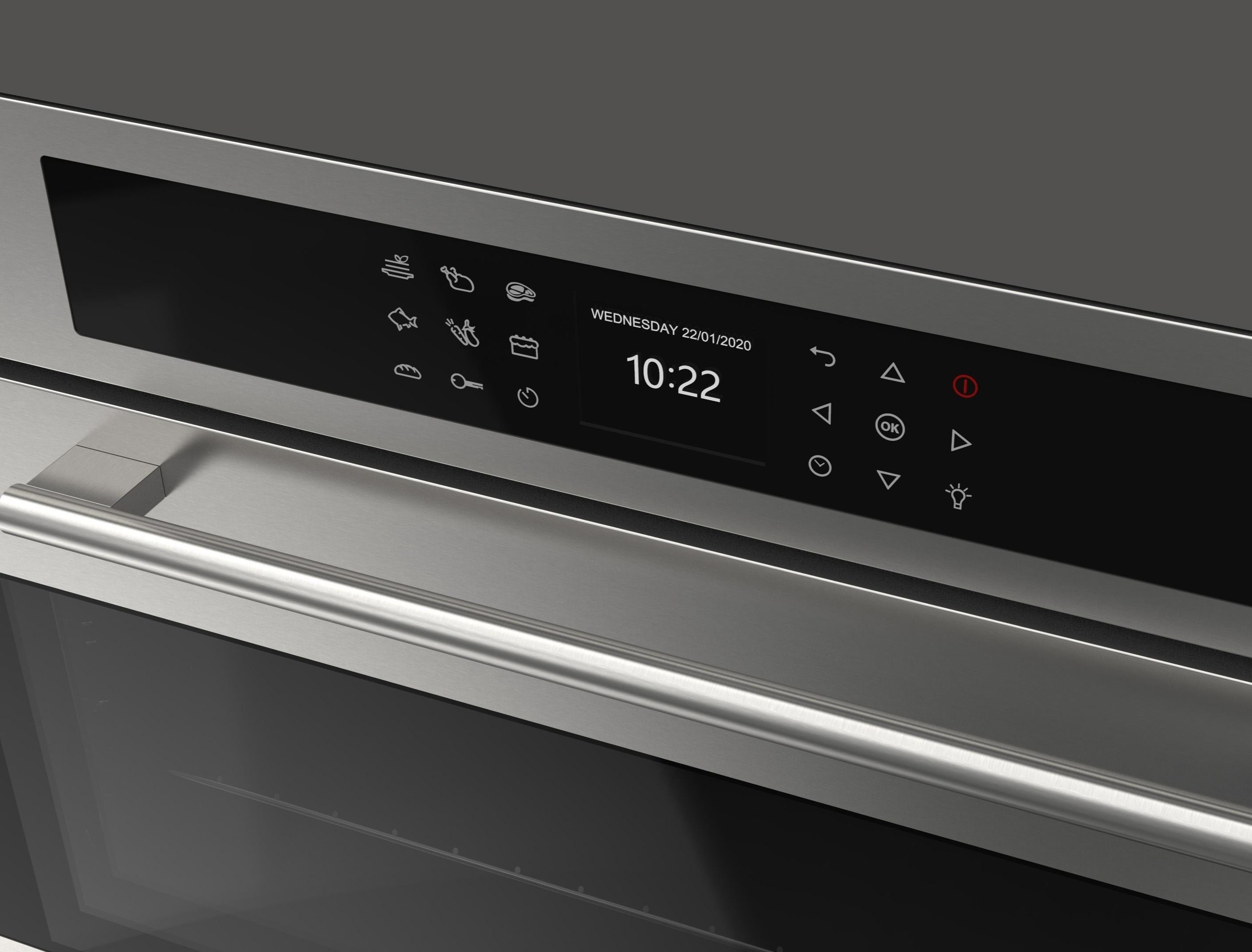 The Plano line oven combines classic aesthetics with a unique and innovative design. This oven features a metal handle and an electronic touch control system with a double keypad, which makes it easy to activate the desired function.