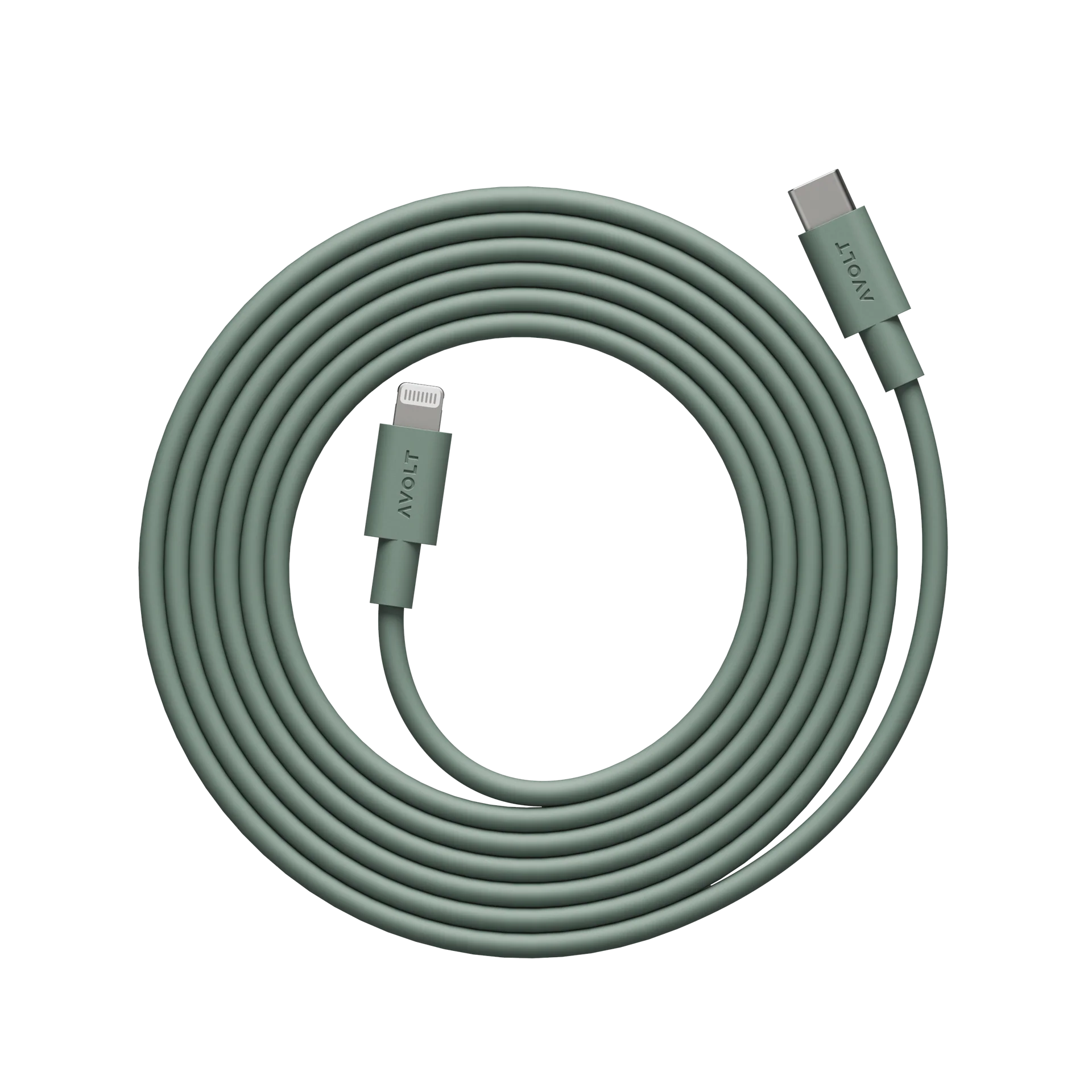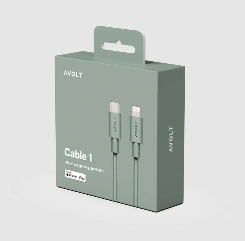 The Cable 1 USB-C to Lightning, in the unique Oak Green hue, is a premium charging accessory that aligns with Avolt's commitment to Scandinavian design and functionality.