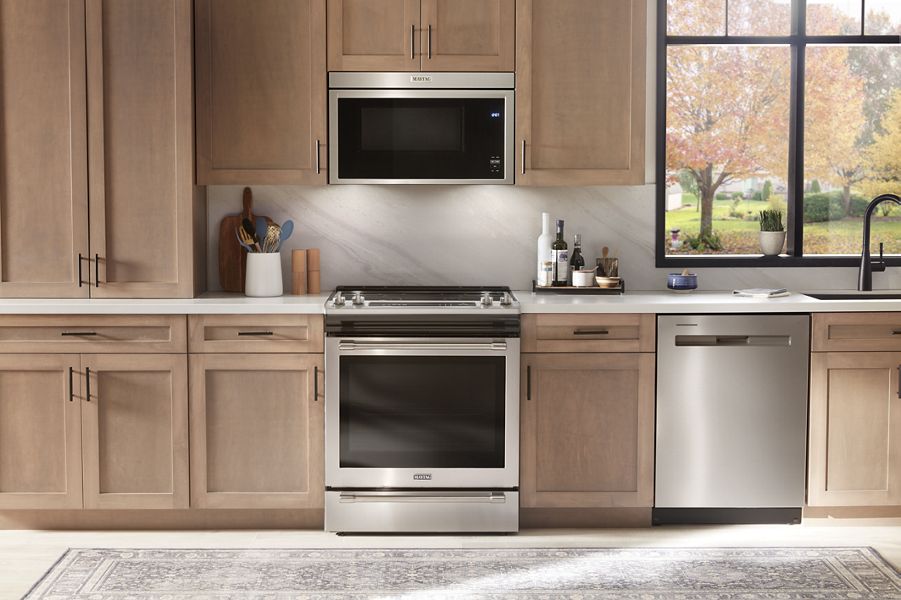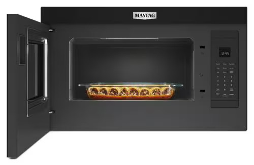 The Maytag® Over-the-Range Flush* Built-In Microwave fits in with your kitchen but stands out with its features. This 1.1 cu. ft. microwave without turntable gives you space for more cooking and quick cleanup so you can spend less time in the kitchen.