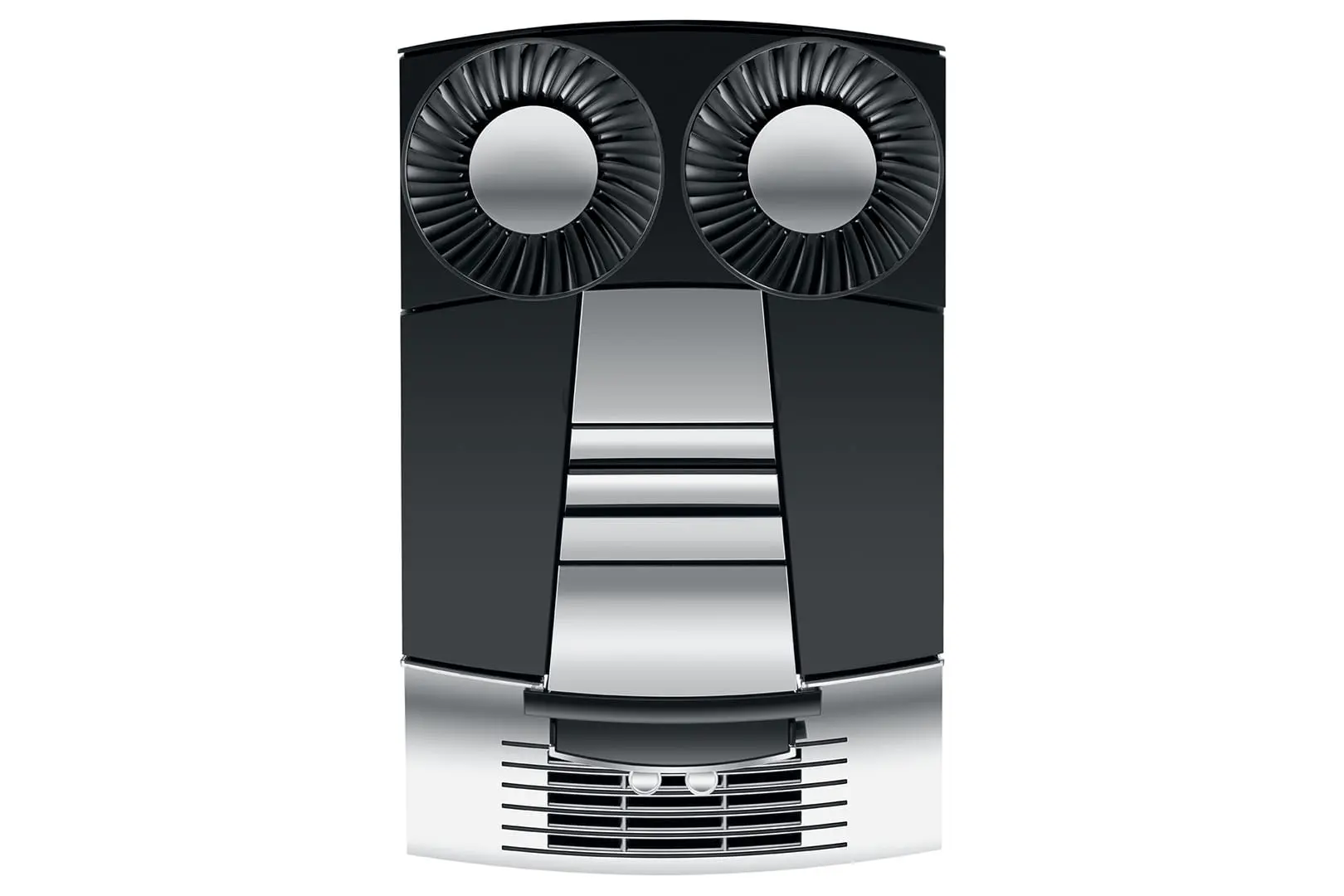 The two bean containers with their turbine design are reminiscent of the powerful engine of a sports car, evoking a sense of luxury and performance. The redesigned cup grille completes the harmonious look.