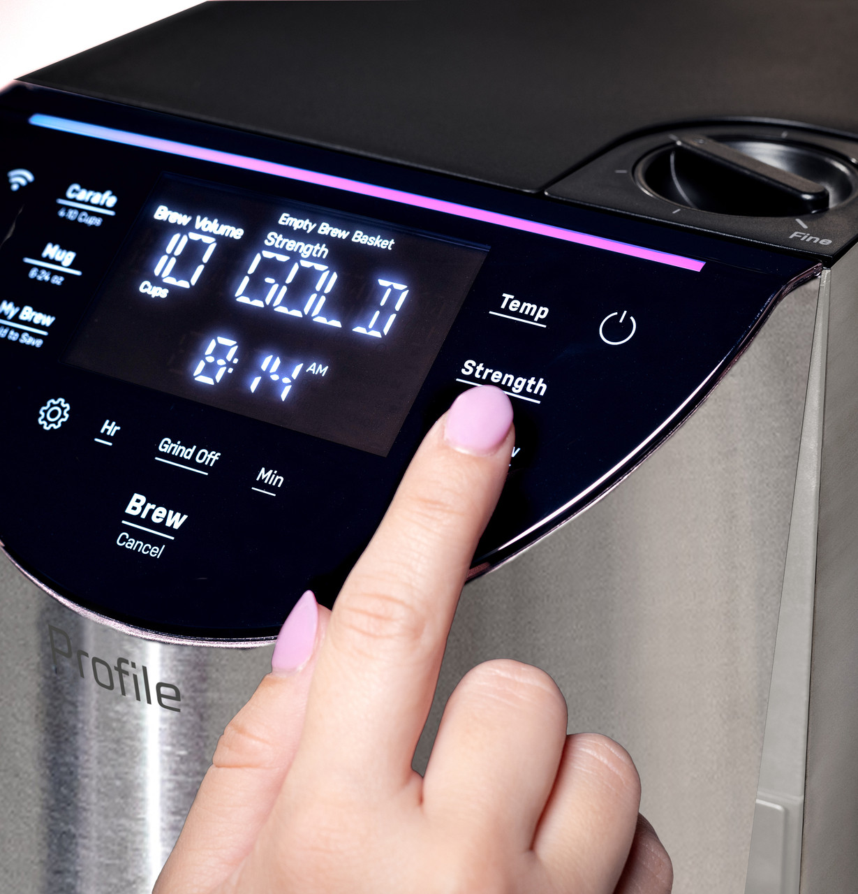 The SmartHQ App allows you to use additional connected features of your WIFI-enabled coffee maker. MyBrew profiles, bloom time and grind time can be customized from anywhere, while voice control via Amazon or Google allows for easy remote brewing.