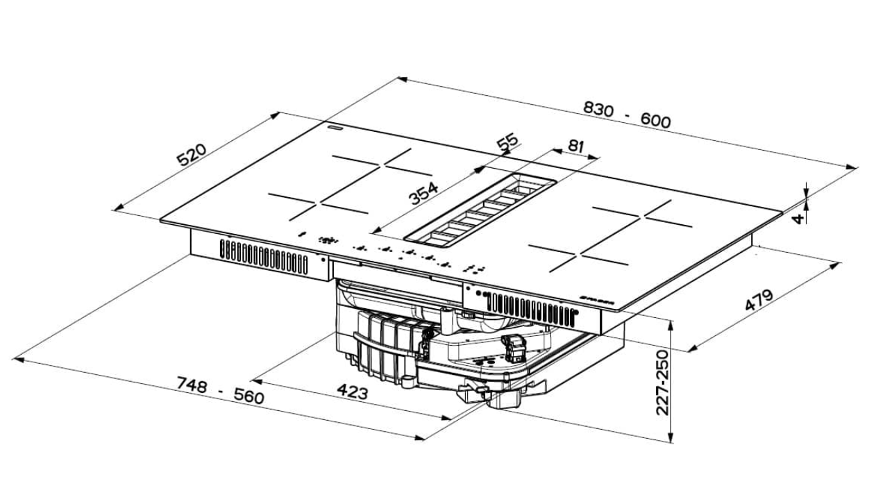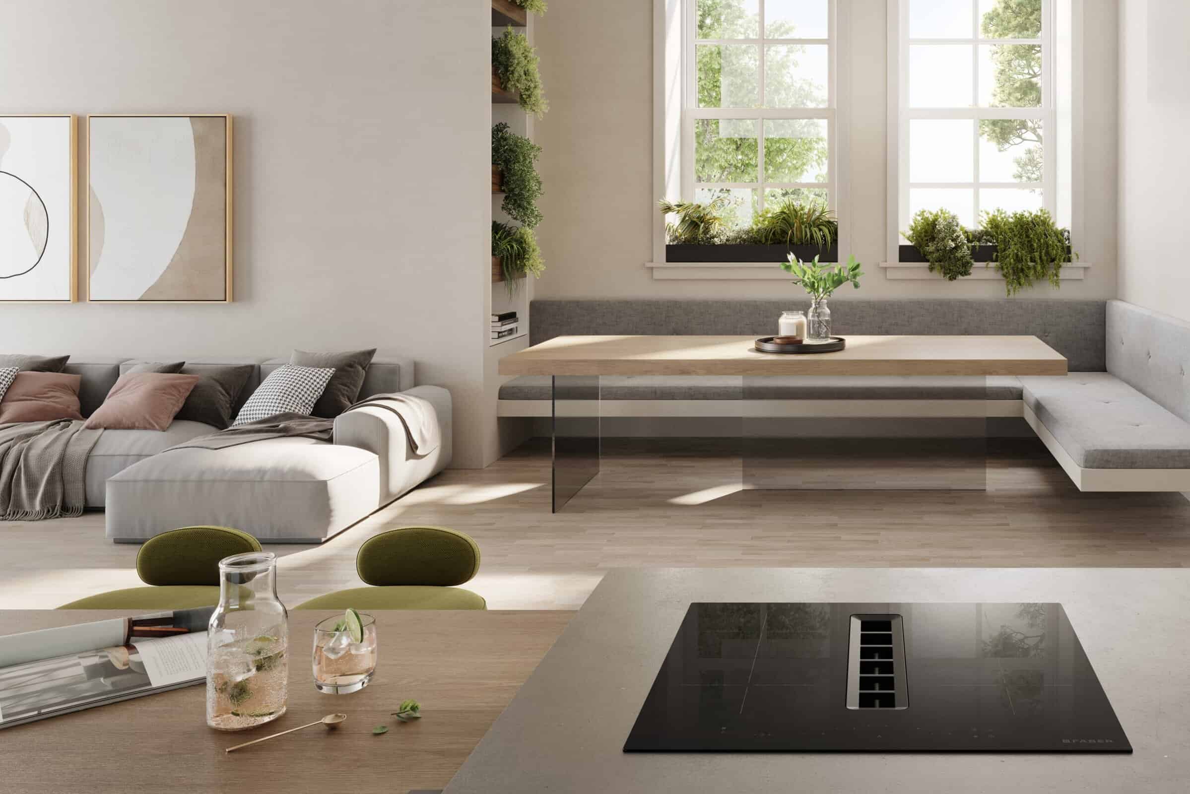 Launching in 2025, this model features a frameless black glass surface with subtle matte accents, giving it a premium, contemporary look that blends seamlessly into modern island or countertop settings. At its core is Faber’s powerful built-in extractor, delivering up to 800m³/h motor capacity to quickly clear cooking moisture and lingering odours.