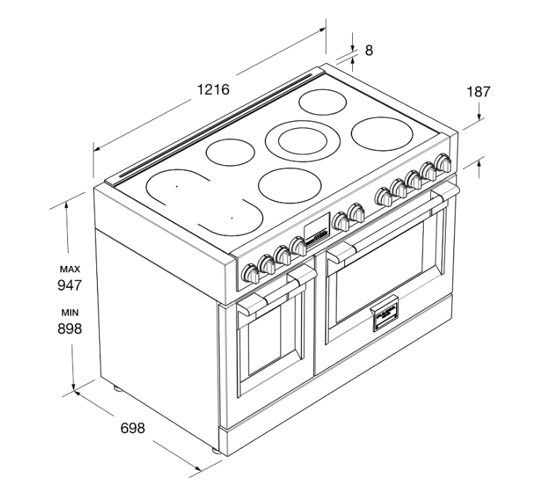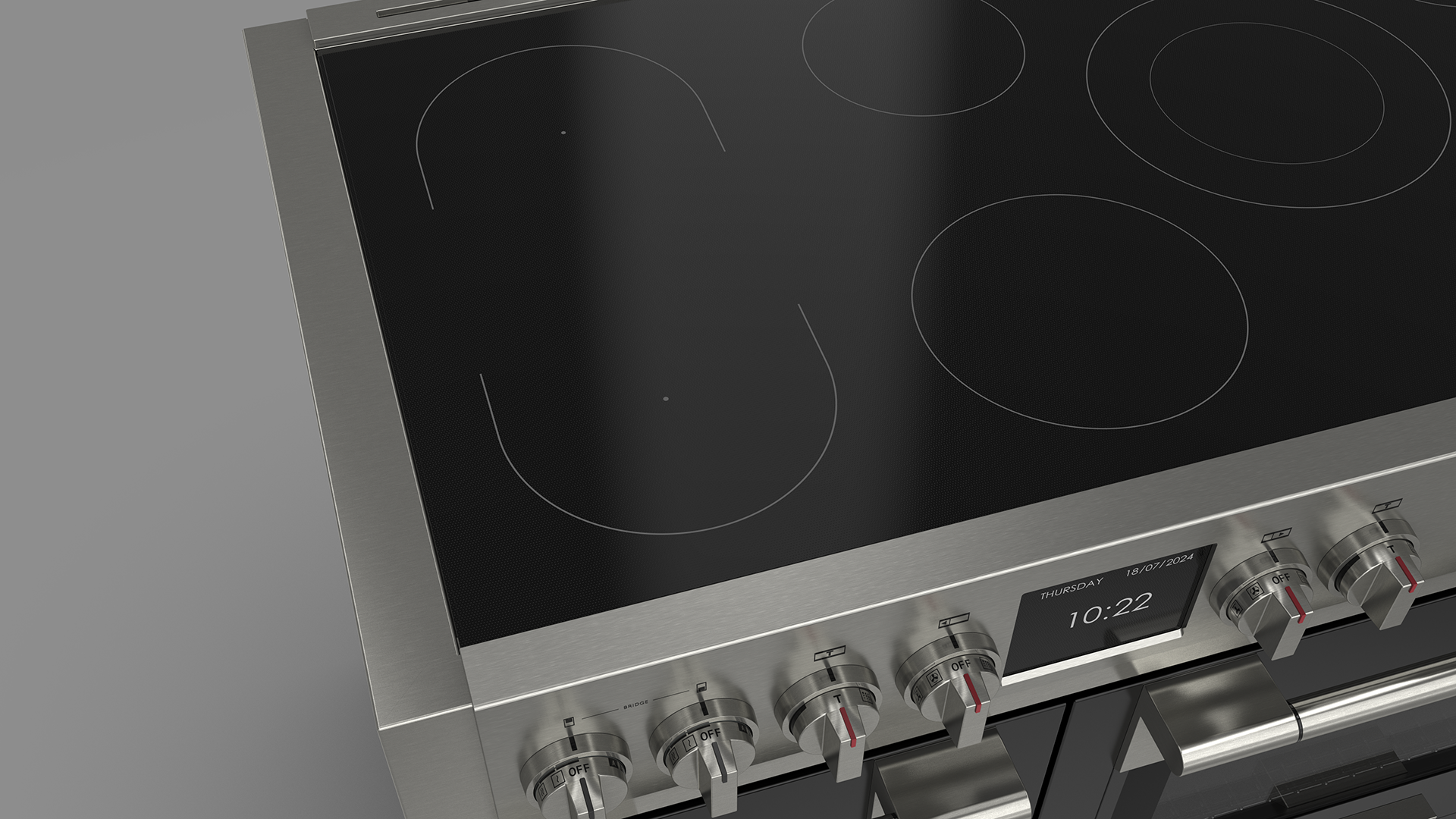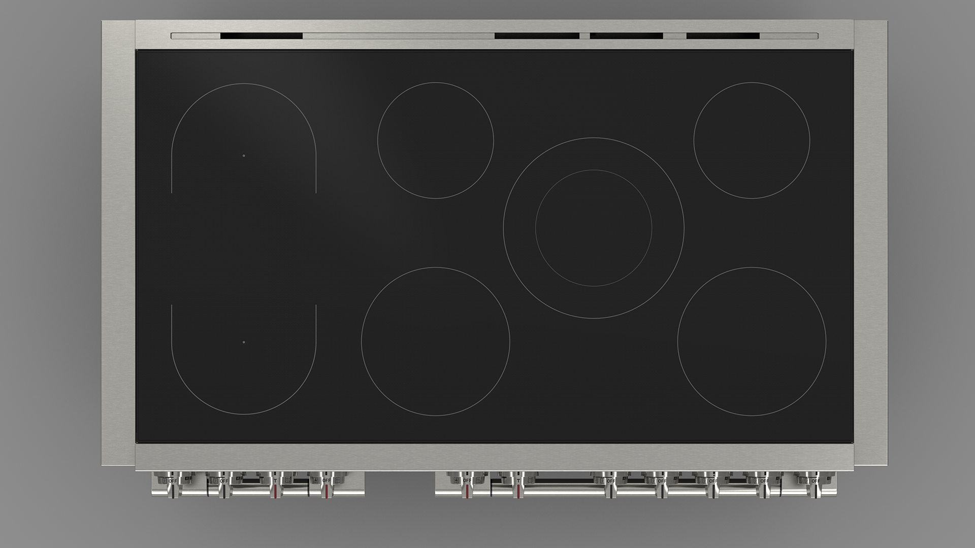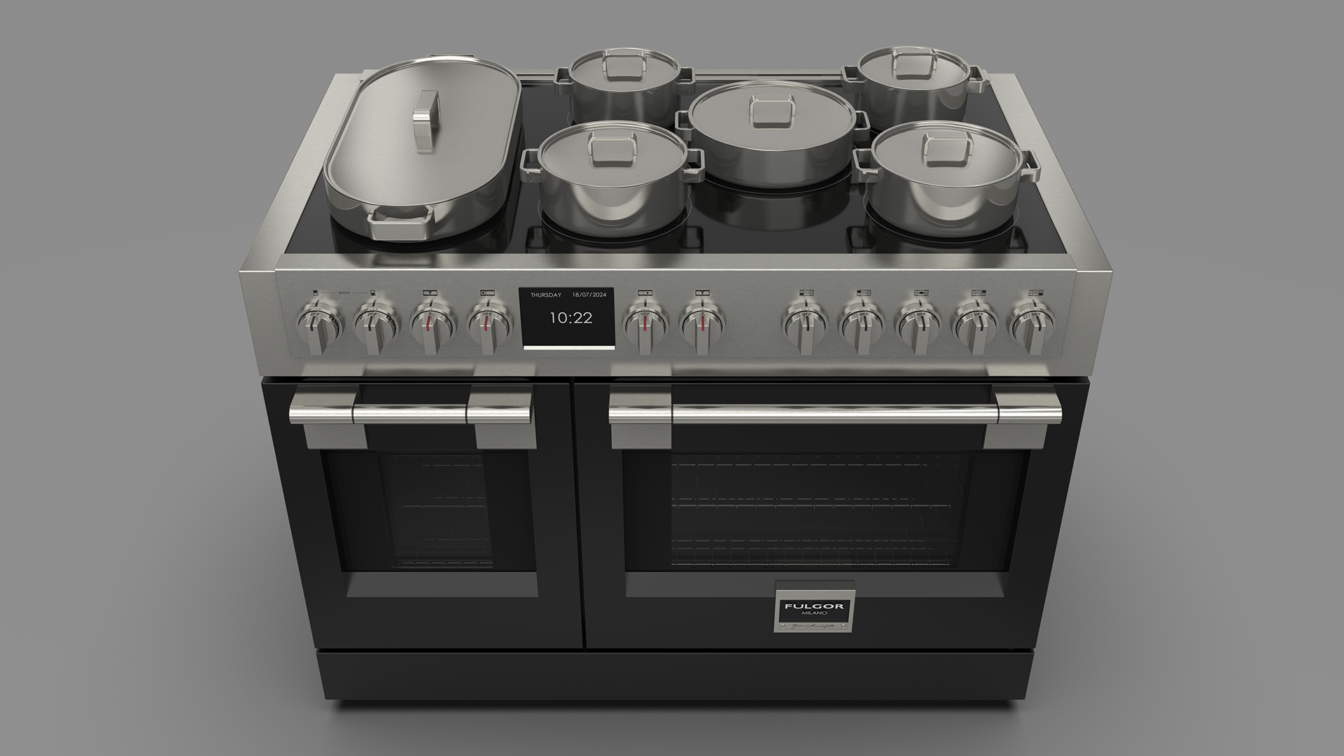 The Sofia Induction range, now available in the new 48” version, represents a refined expression of FULGOR MILANO design. The cooktop is equipped with seven powerful induction zones, including both a flexible bridge and an efficient dual max power zone.