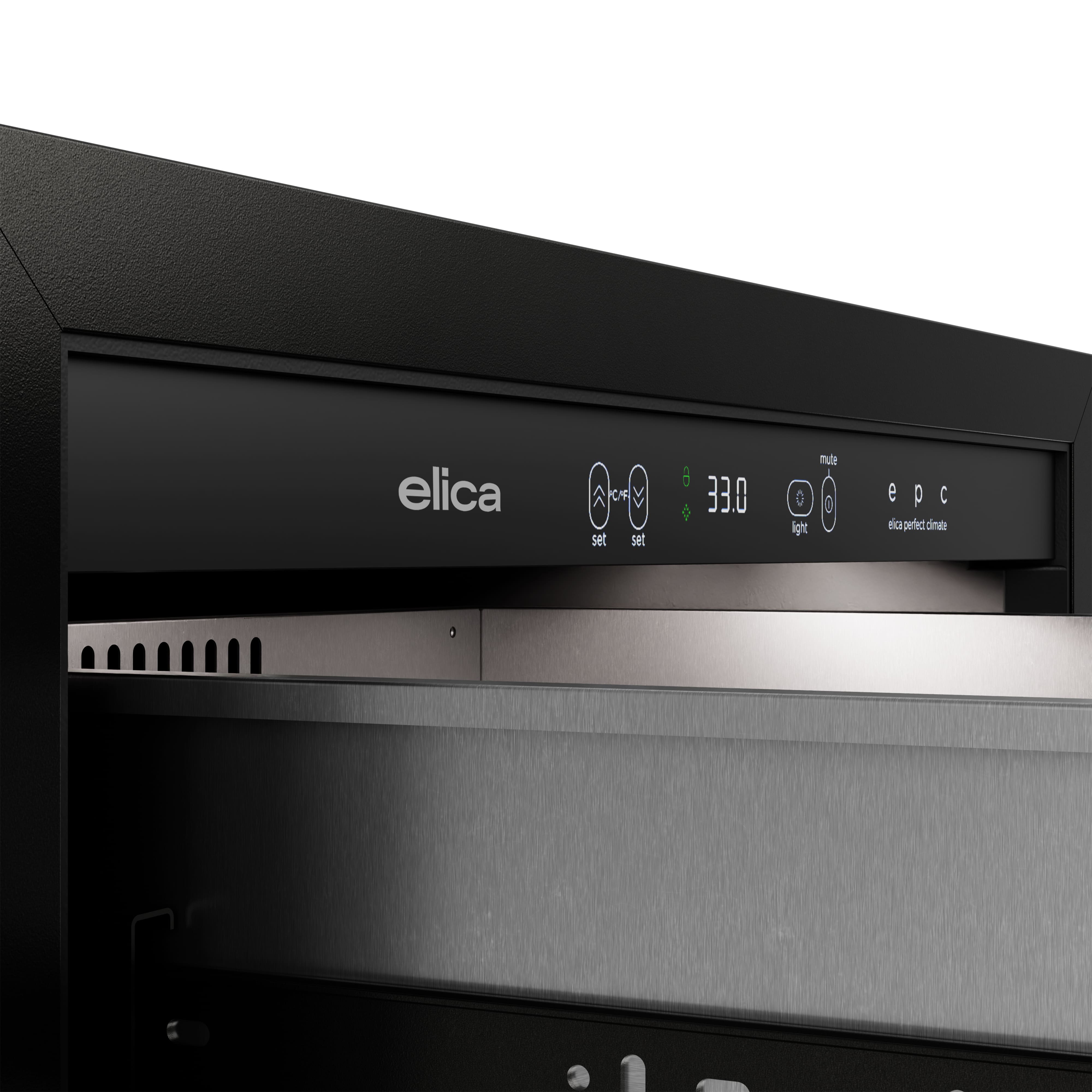 Double air duct cooling system. Elica’s Intelligent System comes with sensors that deliver a precise and consistent temperature & humidity evenly throughout the entire compartment so that all stored bottles are preserved under the same conditions.