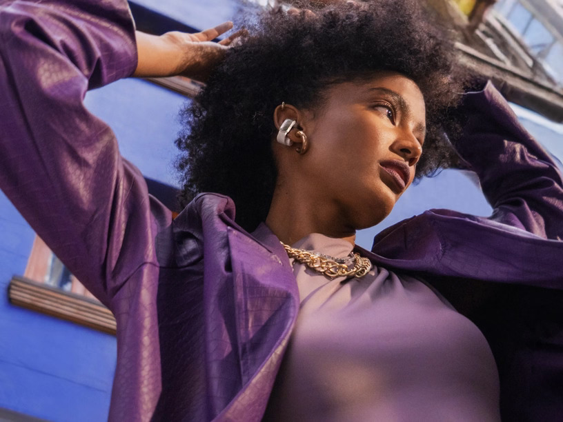OpenAudio tech is for moments that call for awareness, like crossing a busy street or taking a call in the park. Ultra Open Earbuds sit comfortably on your ears and project sound into them, keeping you engaged with life as you listen.
